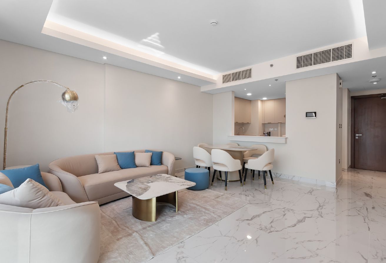 This spacious 1-bedroom apartment features a thoughtfully designed 70 sqm living area, perfect for comfortable and modern living. The unit includes two bathrooms, offering added convenience for both residents and guests. A private balcony enhances the space with natural light and fresh air, creating a bright and welcoming atmosphere.