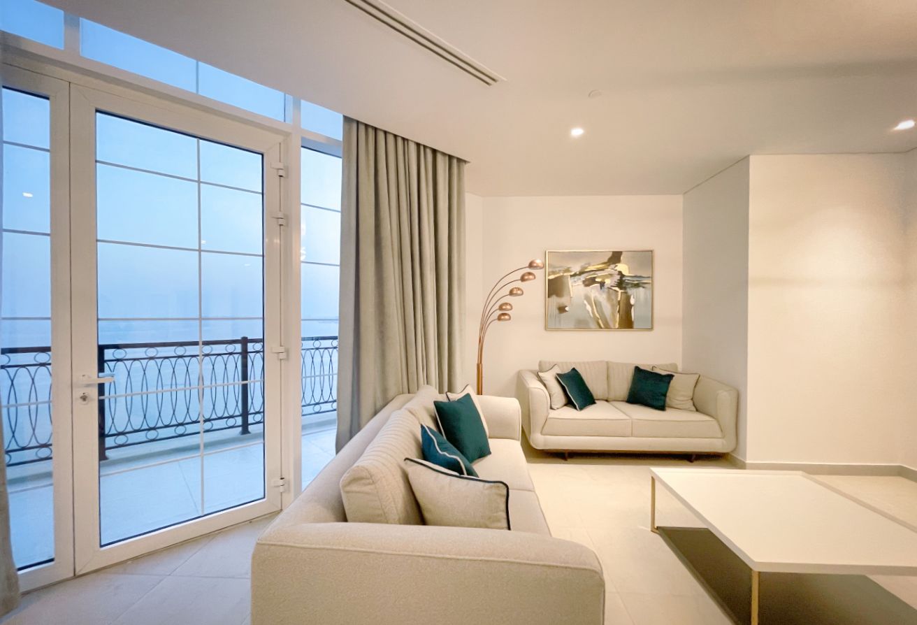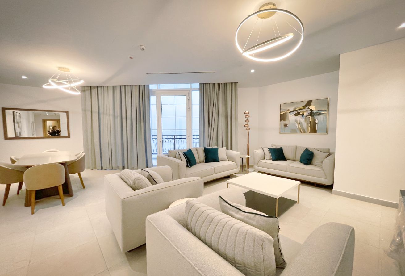 Step into a world of elegance and luxury with this 3-bedroom penthouse located in the prestigious Floresta Garden, The Pearl Island. This spacious home offers an exquisite lifestyle with breathtaking panoramic views of the Arabian Gulf from both the living areas and bedrooms, as seen in the attached photos. The penthouse comes fully furnished with contemporary decor, enhancing the bright and airy atmosphere that flows throughout the space. High ceilings and large windows ensure abundant natural light, providing a serene environment to relax and unwind.
